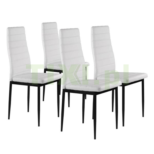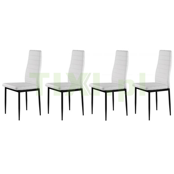Krzesła będą świetnie współgrać z rodzinnym stołem w Twojej jadalni i kuchni. Białe poszycie wykonane z miękkiej ekoskóry i czarne, proste nogi tworzą ciekawe połączenie, które sprawia, że krzesła będą świetnie wyglądać i wpasują się w każdy rodzaj wnętrza, dodając mu wyjątkowego charakteru.