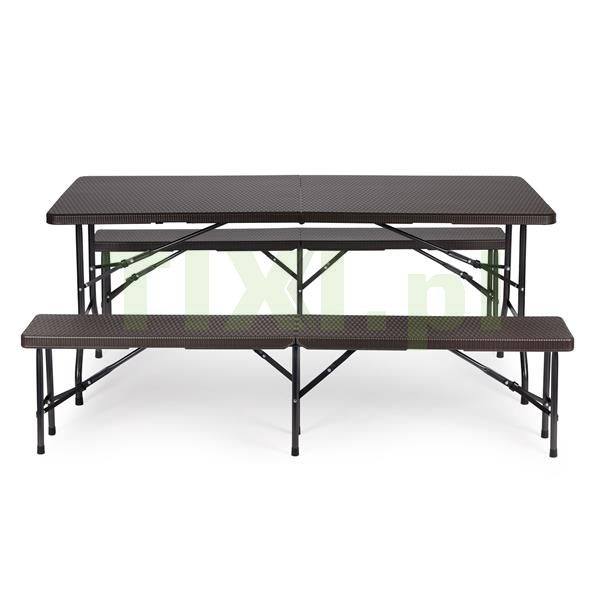 Komplet zapewni miejsce dla 8 osób, wysokości ławek i stołu zostały dobrane tak, aby zestaw gwarantował wygodę oraz komfortową pozycję podczas spotkań na świeżym powietrzu. Możliwość złożenia mebli w walizki pozwoli Ci zaoszczędzić miejsce podczas ich przechowywania, a także ułatwi transport.