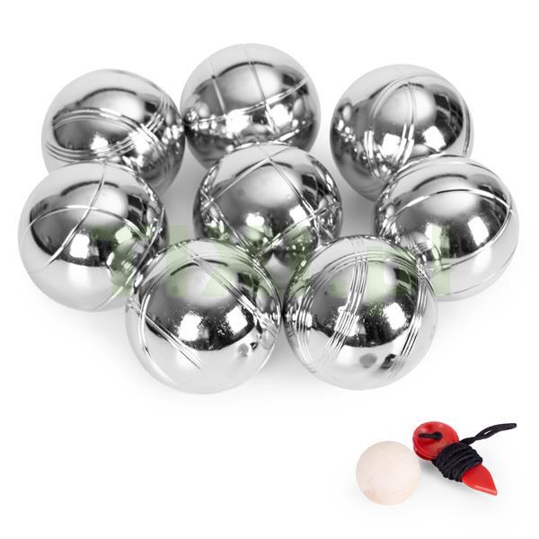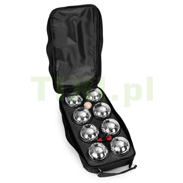 Zestaw zawiera 8 solidnych kul wykonanych z chromowanej stali, które cechują się nie tylko wytrzymałością, ale również estetycznym wykończeniem i różnymi wzorami nacięć, ułatwiającymi rozróżnienie ich podczas gry. Każda kula ma średnicę 72 mm i waży około 700 g, co zapewnia odpowiednią stabilność i komfort rzutu. W komplecie znajduje się także drewniana kula – tzw. „świnka”, która stanowi punkt odniesienia w grze oraz sznurek pomiarowy, umożliwiający precyzyjne sprawdzanie, która kula znajduje się najbliżej celu – co pozwala uniknąć sporów i dba o uczciwą rywalizację.