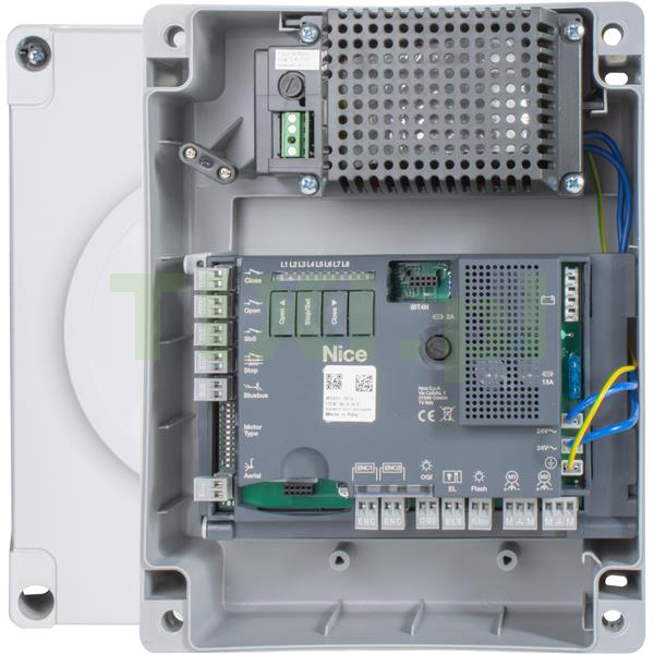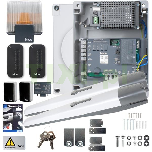 Kompletny zestaw do bram dwuskrzydłowych, pozwalający zautomatyzować bramę o świetle 6 metrów, do pracy intensywnej, wyposażony w najnowsze rozwiązania marki NICE.